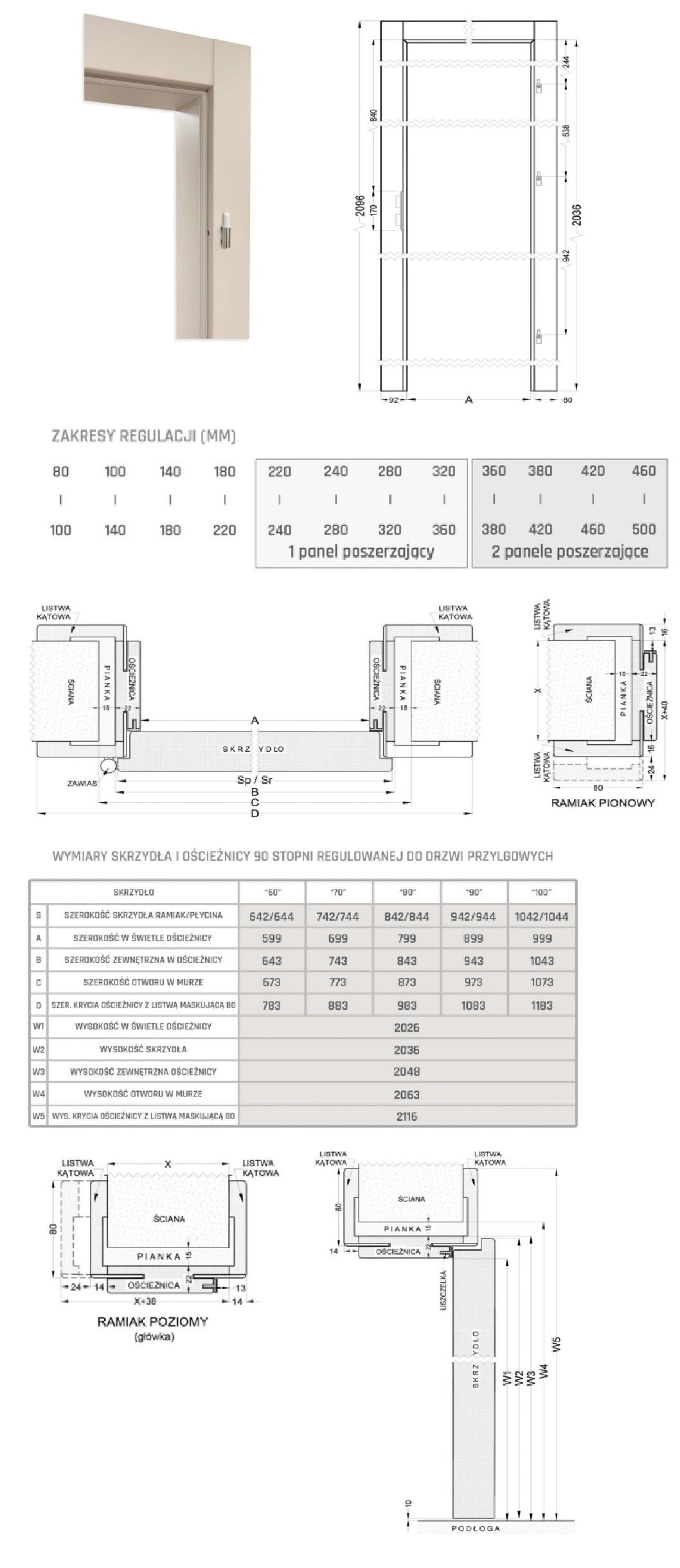 PRZYLGOWA 90° ościeżnica regulowana 90° LISTWY 8cm do drzwi Prestige i Płycinowych