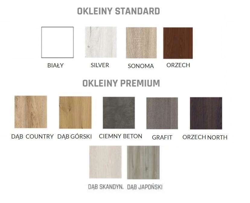 DĄB COUNTRY – DĄB GÓRSKI – CIEMNY BETON – GRAFIT – ORZECH NORTH – DĄB SKANDYNAWSKI – DĄB JAPOŃSKI –