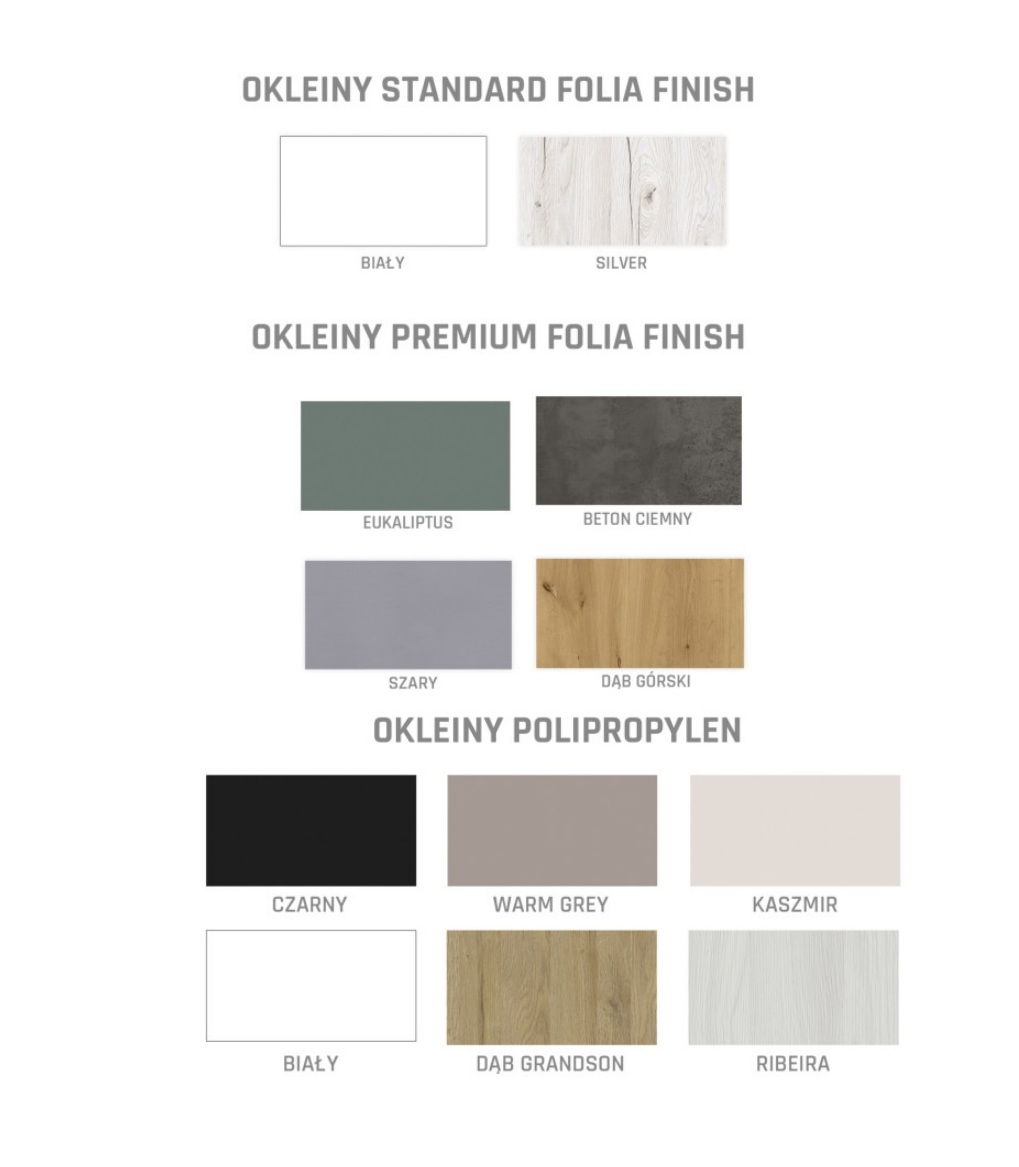 Wszechstronne rozmiary: Dostępne w szerokościach: 60, 70, 80, 90 cm, o wymiarach 2035 x 644/744/844/944 x 40 mm, co pozwala dopasować je do różnych przestrzeni.