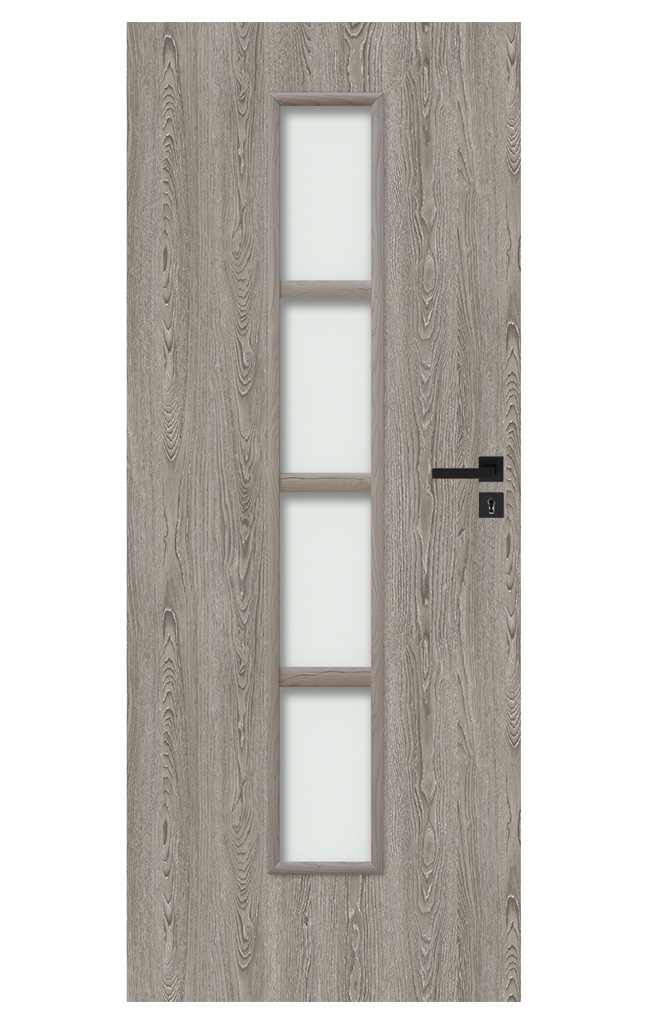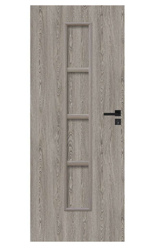 Proponowany model to skrzydło drzwiowe wykonane z ramy MDF wypełnionej wkładem stabilizującym w postaci tzw. plastra miodu. Rama wraz z wypełnieniem jest dwustronnie obłożona płytą HDF i oklejona Finish Folią w kolorze drewna.