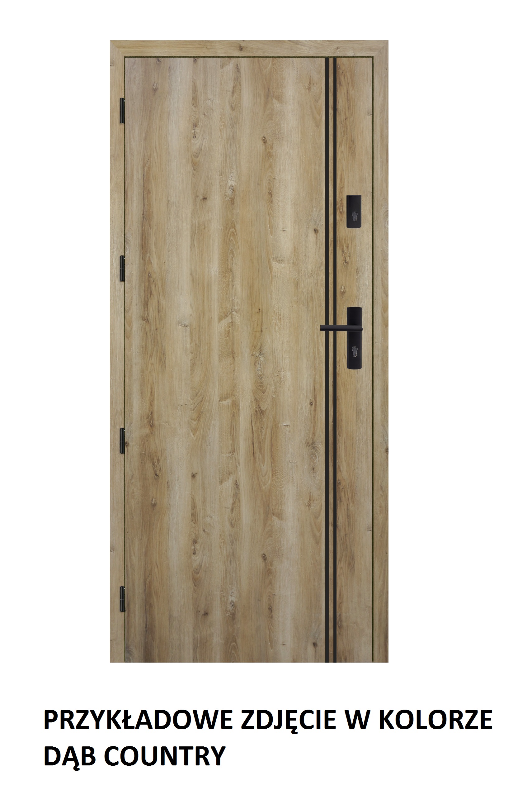 Proponowany model to skrzydło drzwiowe wykonane z ramiaków MDF uszlachetnionych okleiną drewnopodobną o zwiększonej odporności na zarysowania.
