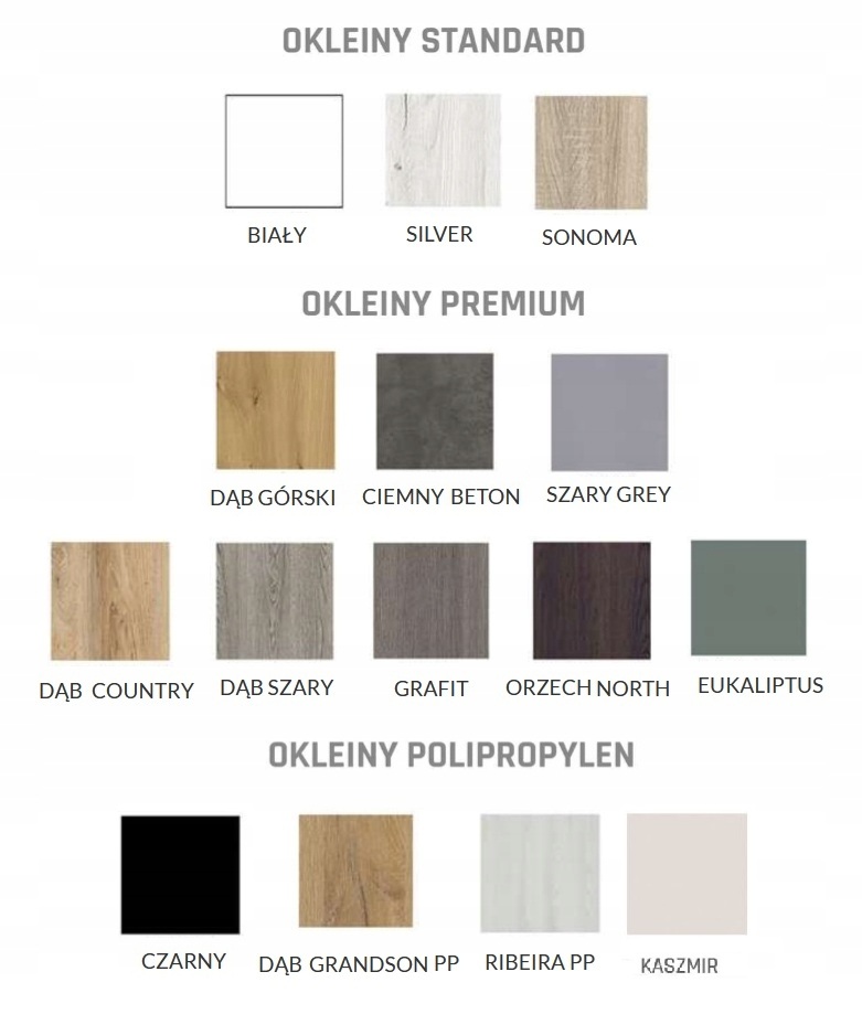 Wszechstronne rozmiary: Dostępne w szerokościach: 60, 70, 80, 90 cm, o wymiarach 2035 x 644/744/844/944 x 40 mm, co pozwala dopasować je do różnych przestrzeni.