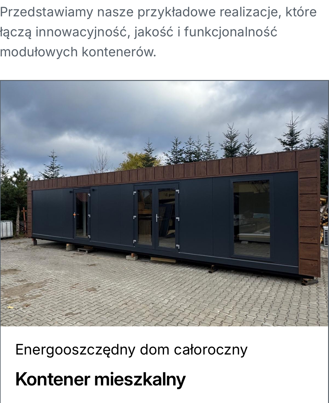 Jesteśmy producentem całorocznych domów, biurowców, powierzchni handlowych czy usługowych z kontenerów, oferującym nowoczesne, energooszczędne i modułowe konstrukcje.