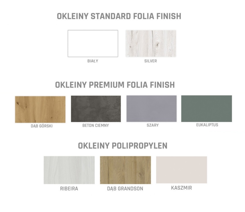 Wszechstronne rozmiary: Dostępne szerokości: 60, 70, 80, 90, 100 cm, o wymiarach 2035 x 644/744/844/944 x 40 mm, co pozwala dopasować je do różnych przestrzeni.
