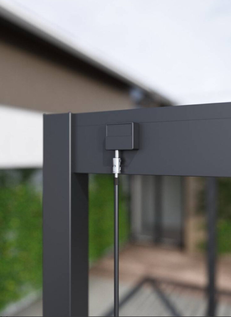 Minimalistyczny design pergoli sprawia, że konstrukcja doskonale wpisuje się w nowoczesne trendy architektoniczne. Proste linie konstrukcji oraz elegancki antracytowy kolor nadają pergoli nowoczesny i prestiżowy charakter.