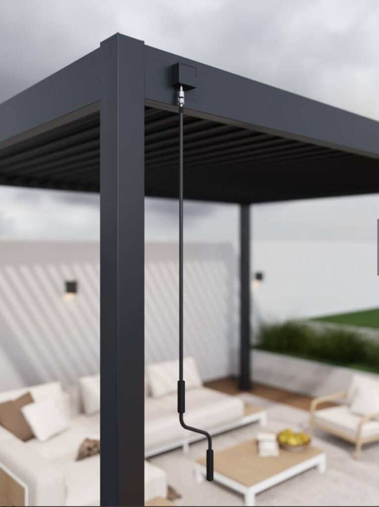 Manualny system sterowania pozwala na wygodne ustawienie kąta nachylenia lameli. Dzięki temu w słoneczne dni można stworzyć przyjemny cień, który zapewnia komfort przebywania na tarasie. Z kolei częściowe otwarcie lameli umożliwia dopływ naturalnego światła, co sprawia, że przestrzeń pod pergolą pozostaje jasna i przyjazna.