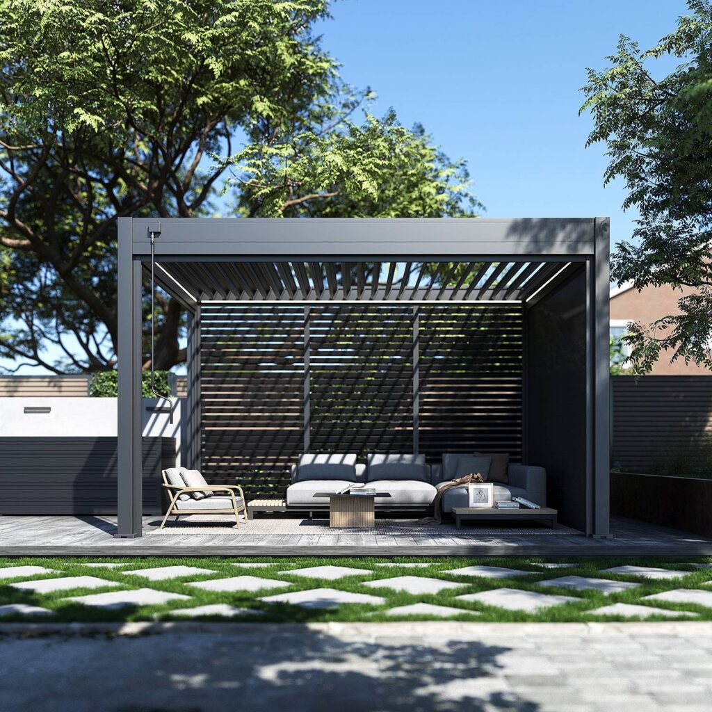 Nowoczesne pergole aluminiowe z zadaszeniem żaluzjowym są cenione za swoją funkcjonalność oraz możliwość dopasowania warunków użytkowania do aktualnej pogody.