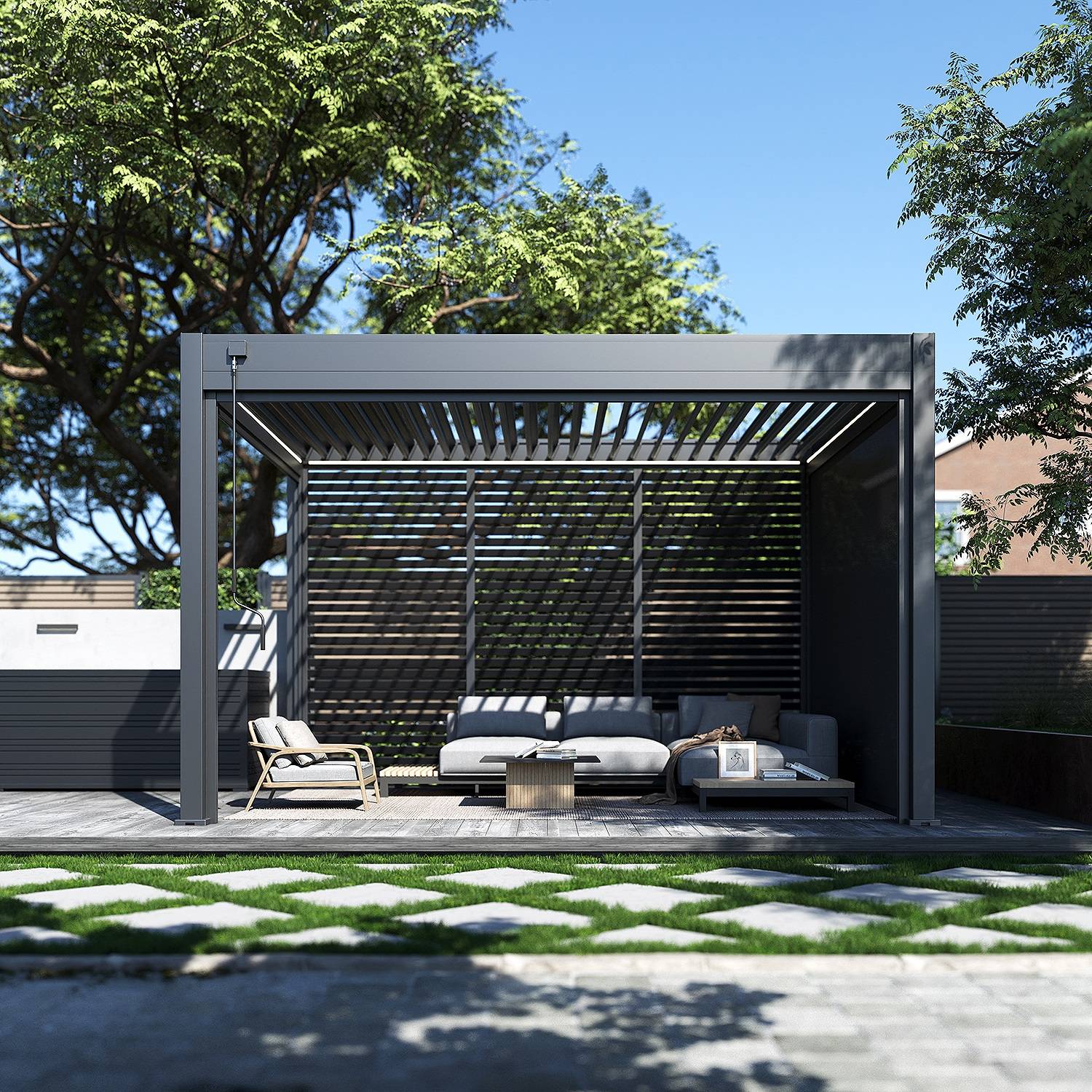 Dzięki modułowej konstrukcji pergola może zostać rozbudowana o dodatkowe elementy wyposażenia. Do najczęściej wybieranych akcesoriów należą aluminiowe panele boczne oraz specjalne osłony przeciwwiatrowe. Elementy te pozwalają zwiększyć komfort użytkowania przestrzeni pod pergolą oraz zapewniają dodatkową ochronę przed wiatrem i intensywnym nasłonecznieniem.